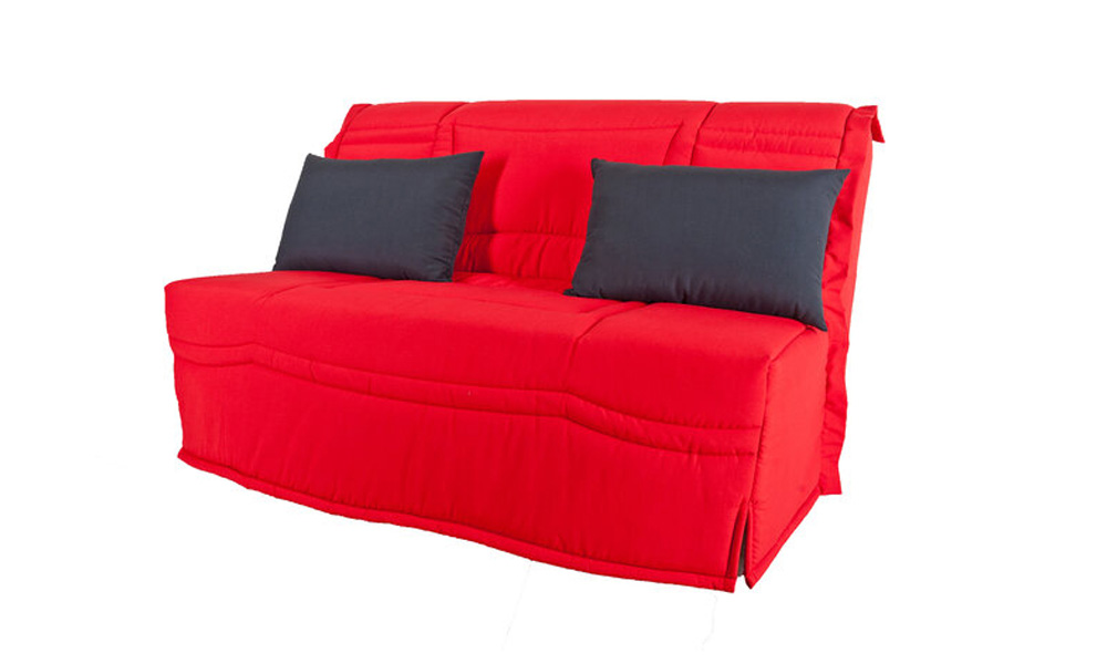 Housse montée sur fermeture à glissière ouate 380gr. Matelas H.12 cm, mousse 35kg/m3. 2 coussins 40 x 60 cm. Garantie 5 ans.