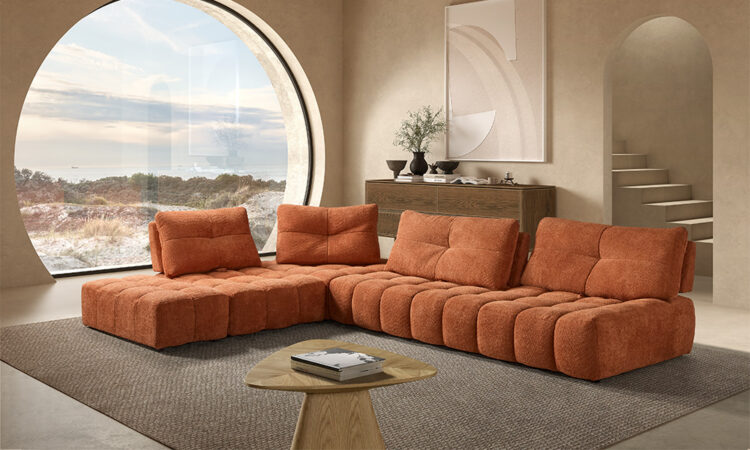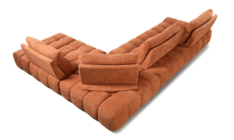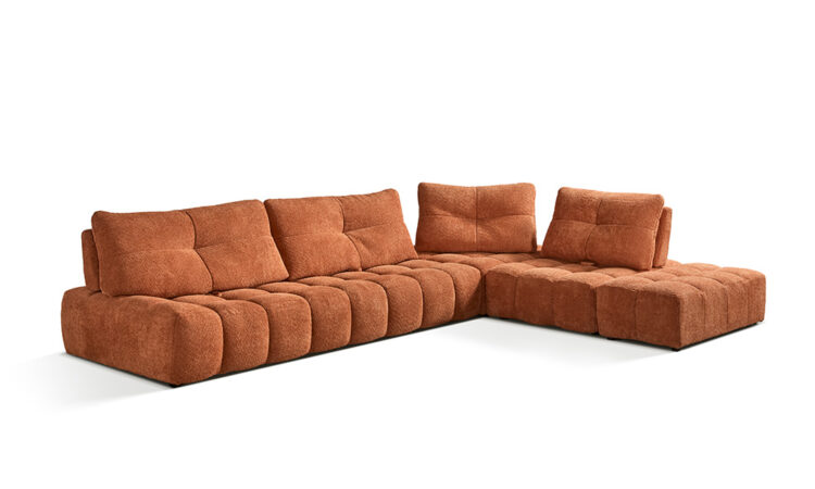 Structure pin massif, contre-plaqué et panneaux de particules. Suspension assise ressorts no-sag. Garnissage assise mousse polyuréthane 25 kg/m3 et ressorts ensachés. Dossier 23 kg/m3 et flocca, accoudoirs 23/26 kg/m3 et flocca. Pied bois 4 cm. Dossier avance recule.